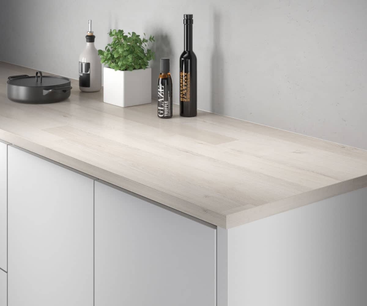 Fibos benkeplater i laminat består av en 29mm tykk sponplatekjerne, behandlet med en laminatoverflate som beskytter både mot varme, søl og støt. Laminat er et særdeles slitesterkt materiale som tåler røff bruk og er enkel å rengjøre.