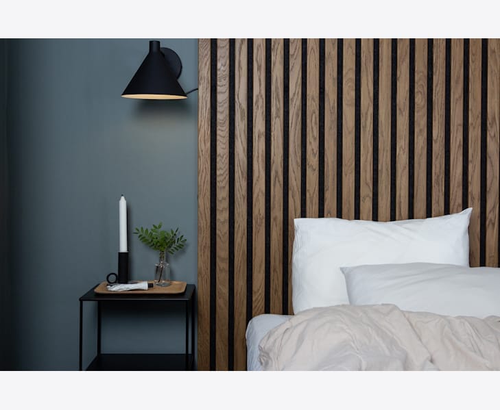 Montering av Ribwall krever ikke noe direkte forberedende arbeid, men panelet monteres enkelt og diskret på den eksisterende veggen med en svart monteringsskrue som gjemmer seg i teppet eller med monteringslim.