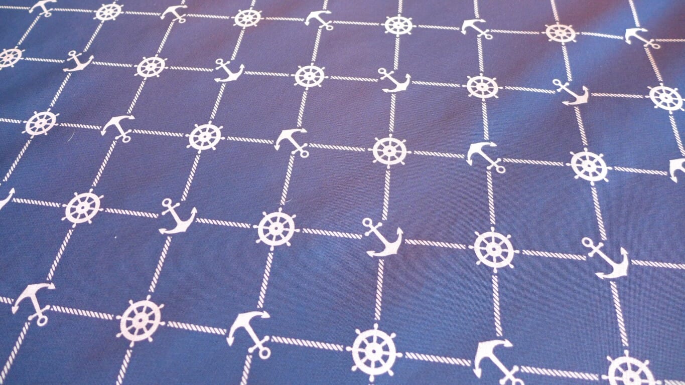 Maritim voksduk med klassisk mønster. Utrolig flott duk med matt finish og struktur som minner om tekstil. Duken kan ligge ute som inne uten at den gir inntrykk av å være en rimelig duk som er superenkel å vedlikeholde.