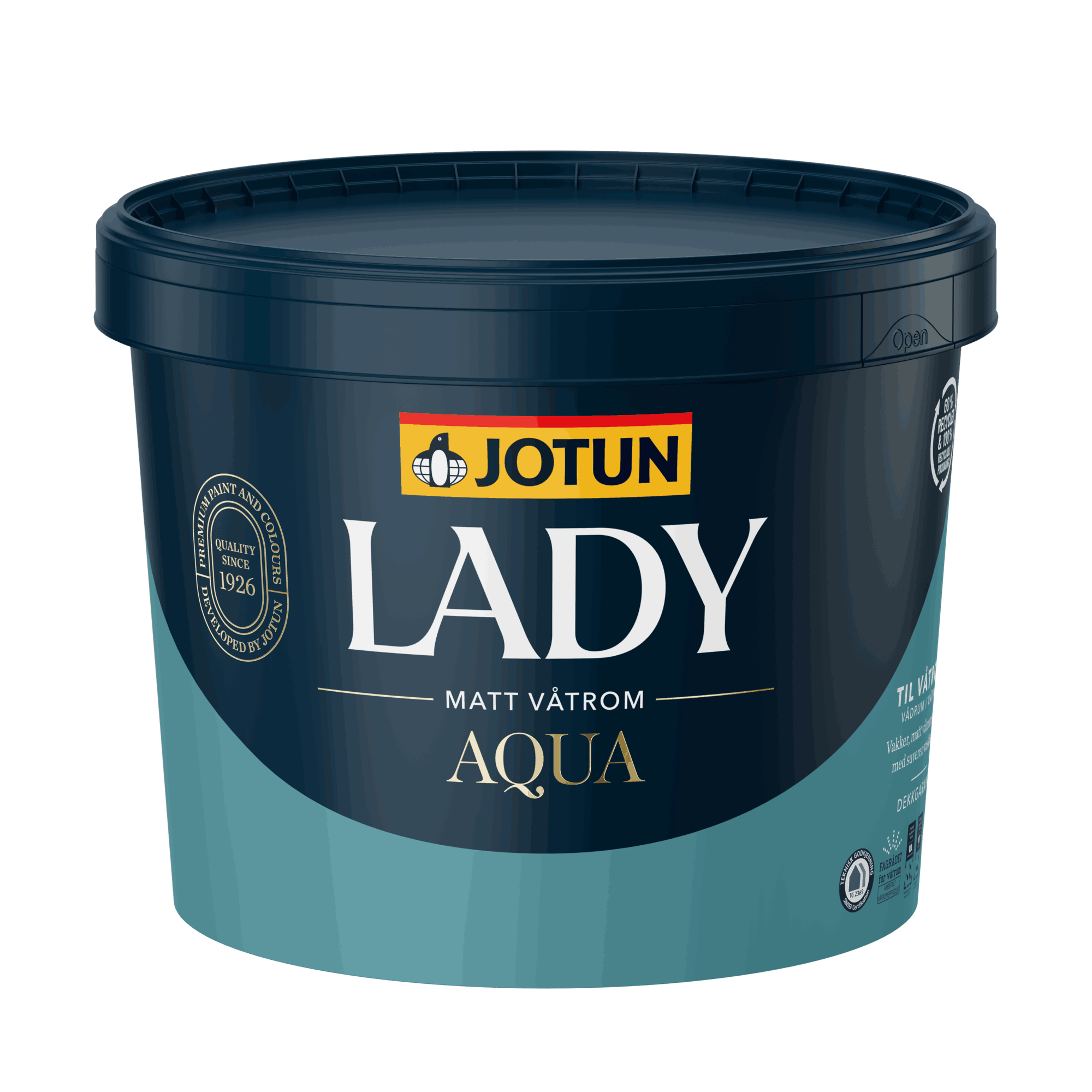 LADY Aqua er en vakker, matt våtromsmaling med suveren vaskbarhet. Malingen inngår i Jotuns godkjente våtromssystem og er fuktbestandig, slitesterk og flekkavisende. Systemet har gjennomgått strenge skandinaviske tester slik at du kan være trygg på at badet ditt er sikkert og oppfyller kravene til våtromsnormen. LADY Aqua finnes tilgjengelig i alle vakre LADY-farger og gjør det senere fleksibelt og enkelt å fornye badet med nye farger, om man ønsker.
