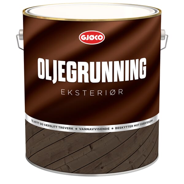 Gjøco Oljegrunning er en Impregnerende eksteriør oljegrunning. Gir en vannavvisende overflate. Tilsatt effektive midler mot svertesopp. Benyttes på ubehandlet bart og malingsslitt treverk.Inneholder filmkonserverende middel mot overflatesopp. Oljegrunning er ideell for grunning av utvendig treverk av gran og furu, både nytt og værslitt.
