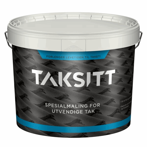 TakSitt Spesialmaling for Utvendige Tak er en vanntynnbar maling spesialutviklet for takstein og metalltak. Malingen gir et jevnt og flott utseende og gir taket lenger levetid. Malingen beskytter taket mot begroing av alger og mose, samt forvitring fra vær og årstider. TakSitt er spesialutviklet for behandling og beskyttelse av sement takstein, metallplater, bølgeblikk og stål. Kan også brukes på asfalt takpapp, betong og eternitt (ikke supereternitt). NB! Asfalt shingel skal ikke males. Ved tvil om behandling bør Scanox AS kontaktes.