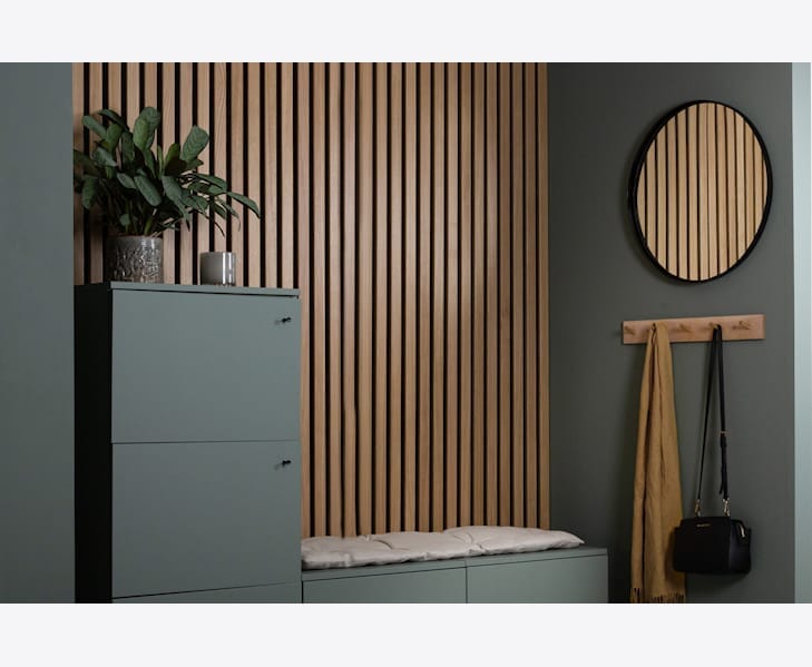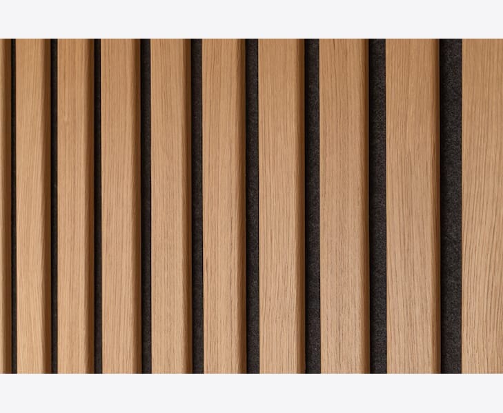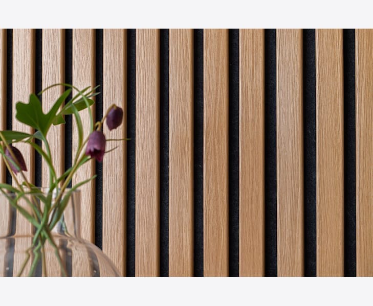 Et veggpanel av treribber montert på en lydabsorberende nålefilt egnet for innendørs vegger. Valgene er mange når det kommer til ribbepaneler og resultatet blir umiddelbart tilfredsstillende! Lag en stilig fondvegg, gang eller sengegavl med Ribwall. Tilgjengelig i farger - Ek Natur, Ek Raw och Ek Macchiatomed med to forskjellige baksider, svart og blondt.