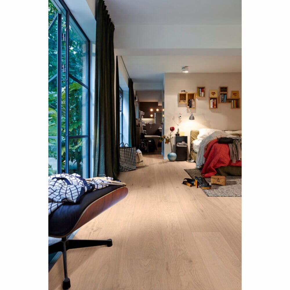 Klassisk tre møter høyteknologiske innovasjoner. Toppsjikt i edelt tre sammensmeltes og forsterkes med mineraler, fibre og naturlige substanser. Mellomsjikt i stabil HDF og bunnsjikt av tre. Lindura Surface Technology gir høy styrke mot trykkbelastning, komfortabel overflate og et holdbart vedlikeholdsvennlig gulv. Høye heler, fotballsko og fallende gjenstander gjør vesentlig mindre inntrykk sammenlignet med ordinær parkett. Ultra matt lakkfinish og store dimensjoner forsterker et genuint og robust uttrykk. Rask, solid og trygg montering med 5G Dry-click system. Gulv med antibakteriell effekt ved regelmessig rengjøring uten kjemiske tilsetningsstoffer. Aqua-Stop kantbehandling forsterker motstandsdyktigheten mot stående vann i hele 24 timer. Det ekstremt harde toppsjiktet kan ikke slipes.