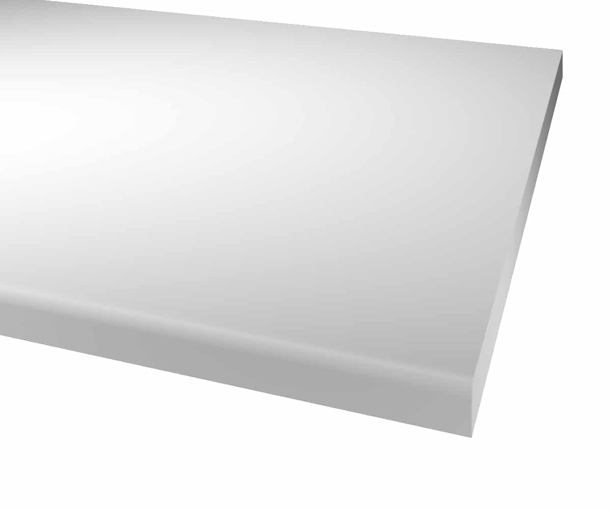 Benkeplatene leveres med laminert avrundet kant/postform på den ene langsiden i format 29x3020x610mm.
