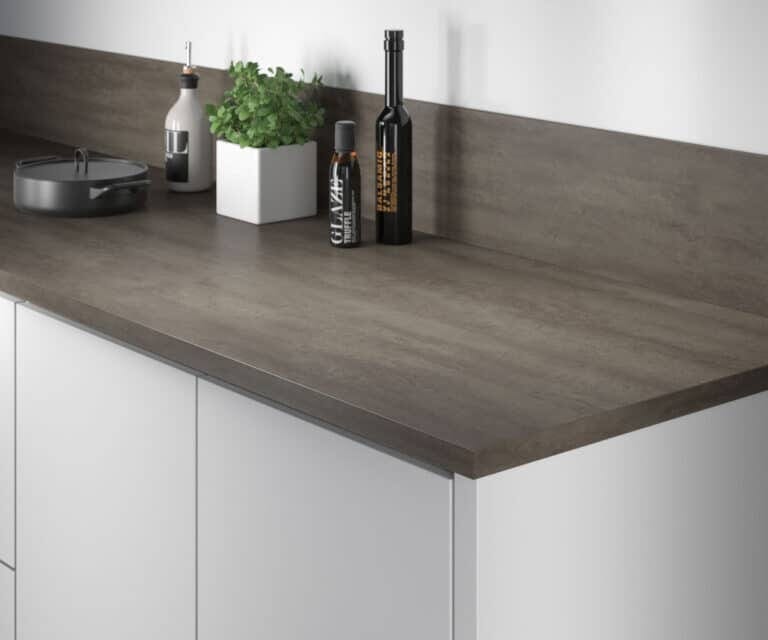Fibos benkeplater i laminat består av en 29mm tykk sponplatekjerne, behandlet med en laminatoverflate som beskytter både mot varme, søl og støt. Laminat er et særdeles slitesterkt materiale som tåler røff bruk og er enkel å rengjøre.