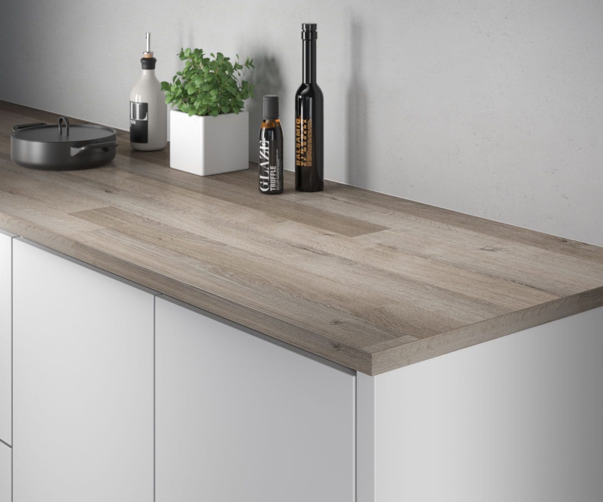 Fibos benkeplater i laminat består av en 29mm tykk sponplatekjerne, behandlet med en laminatoverflate som beskytter både mot varme, søl og støt. Laminat er et særdeles slitesterkt materiale som tåler røff bruk og er enkel å rengjøre.