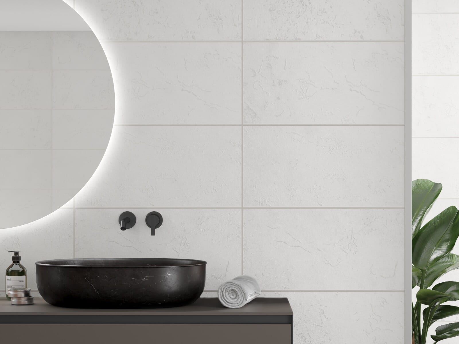 Glans: 3D Flismønster: 60x30cm Fugfarge: Grey