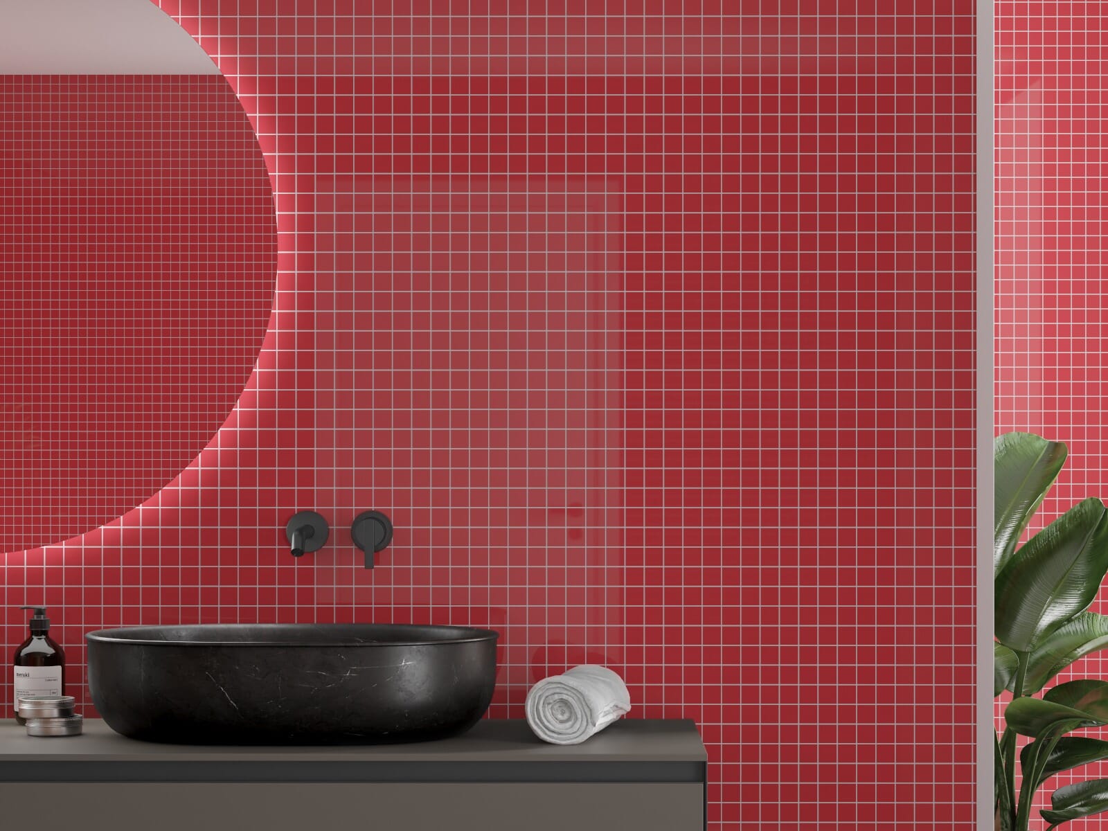 Glans: High Gloss Flismønster: 3x3cm Fugfarge: Grey