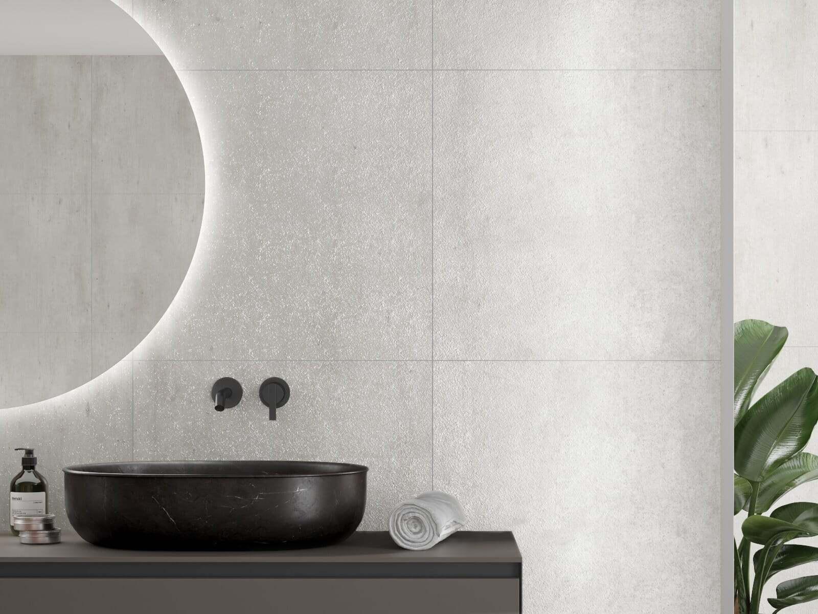 Glans: Silk Flismønster: 60x60cm Fugfarge: Grey