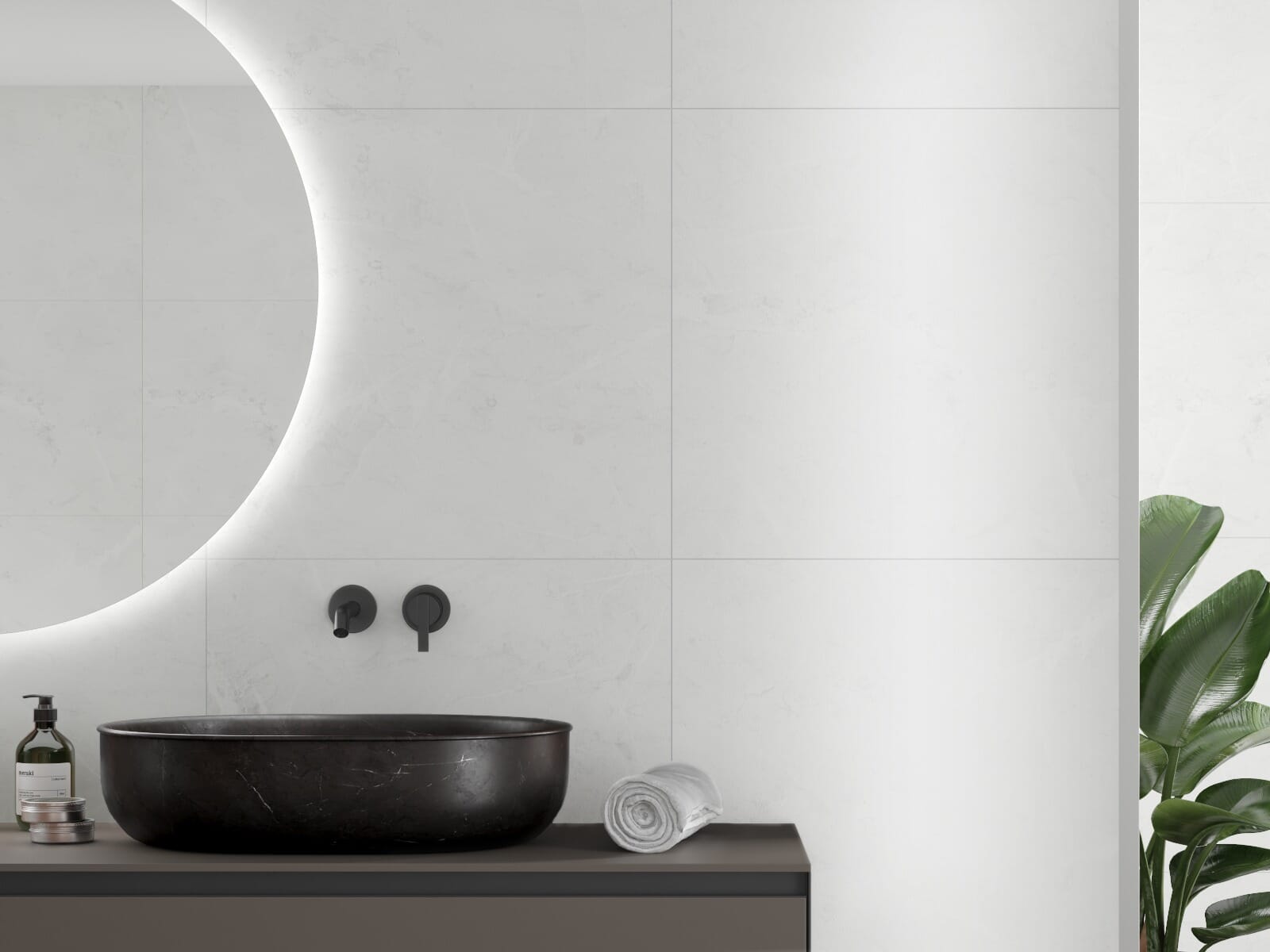 Glans: Silk Flismønster: 60x60cm Fugfarge: Grey