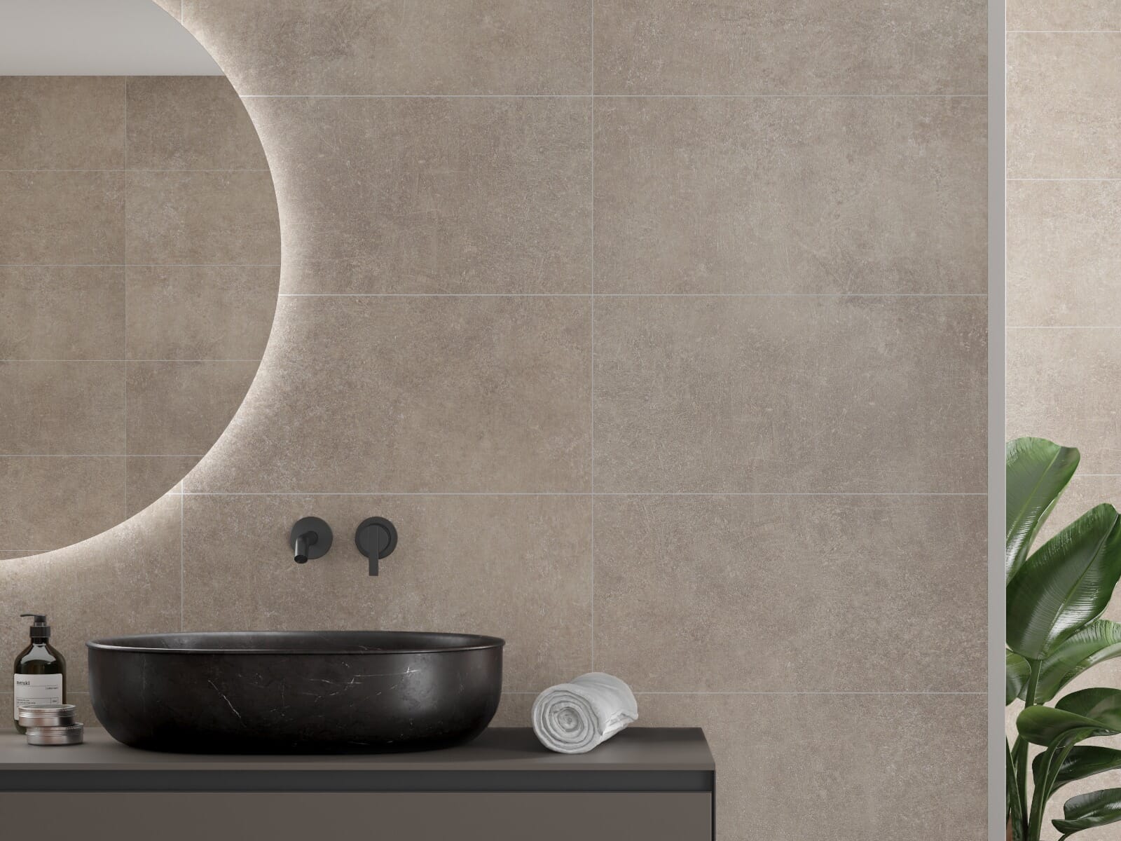 Glans: GEM stone Flismønster: 60x30cm Fugfarge: Grey
