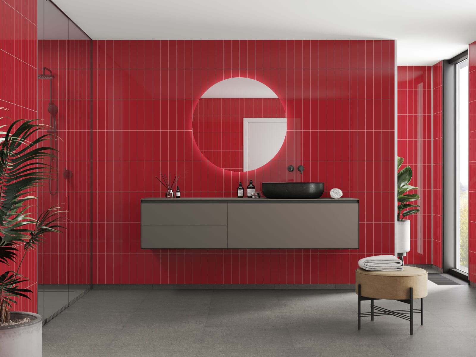 Glans: High Gloss Flismønster: 8x30cm Fugfarge: Grey