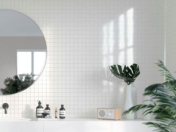 Glans: High Gloss Flismønster: 3x3cm Fugfarge: Grey