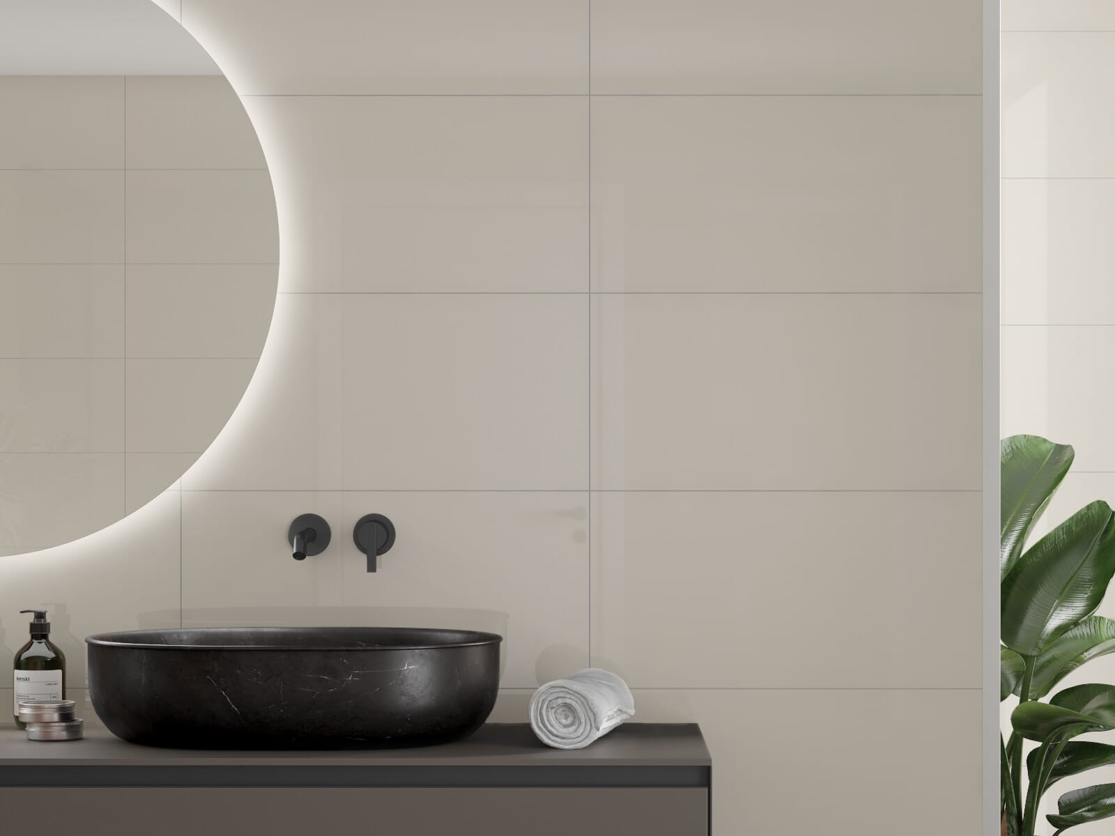 Glans: High Gloss Flismønster: 60x30cm Fugfarge: Grey