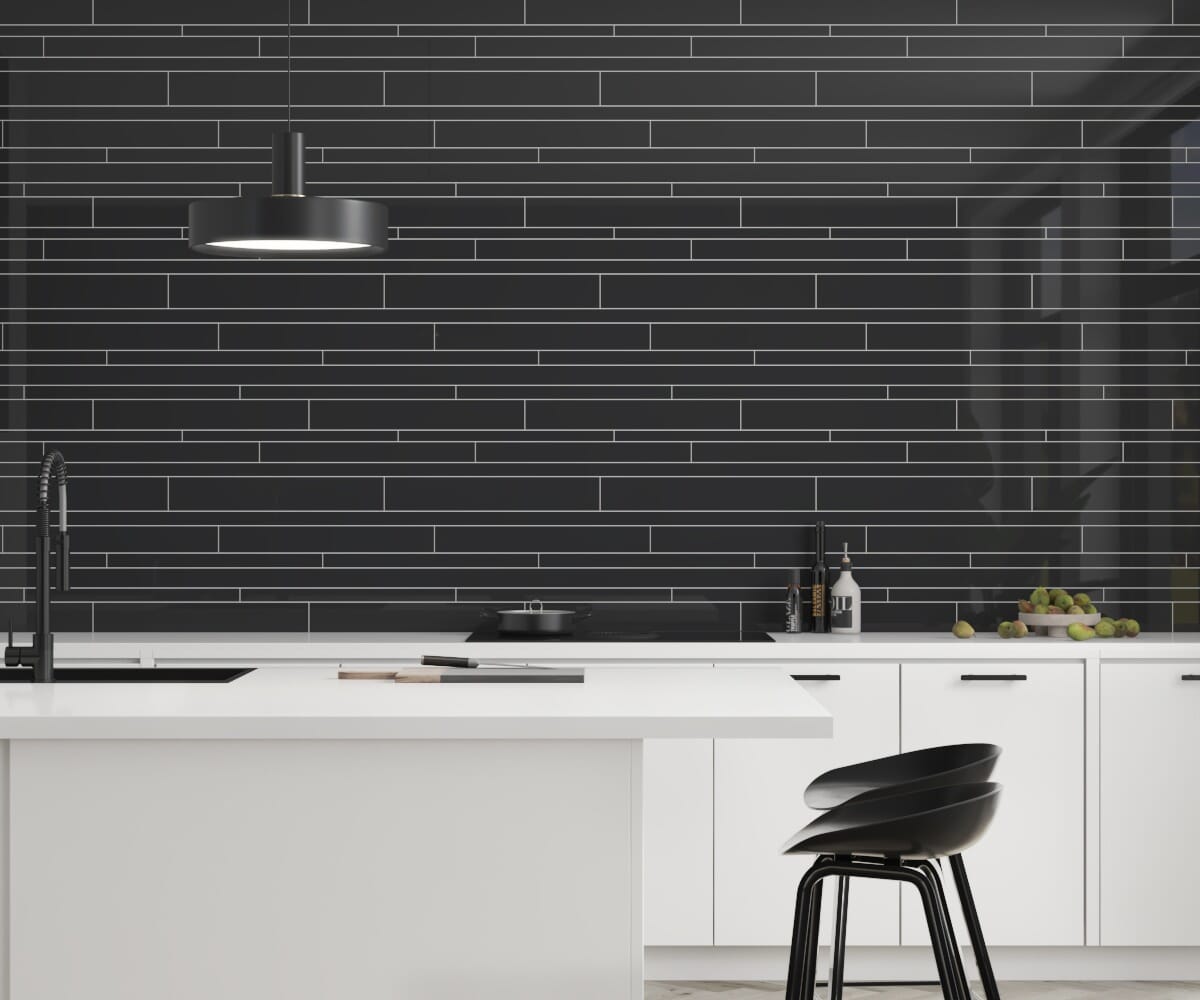 Glans: High Gloss Flismønster: Fracture Slate Fugfarge: Grey