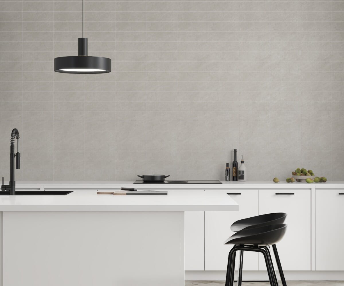 Glans: Stone Flismønster: 30x10cm Fugfarge: White