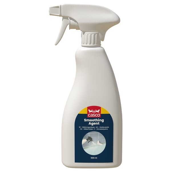 Casco Smoothing Agent er et vannbasert, løsemiddelfritt glattemiddel for nylig påførte elastiske fugemasser og lim. Sprayes direkte på overflaten som så glattes med et glatteverktøy - som på forhånd er fuktet med Casco Smoothing Agent.