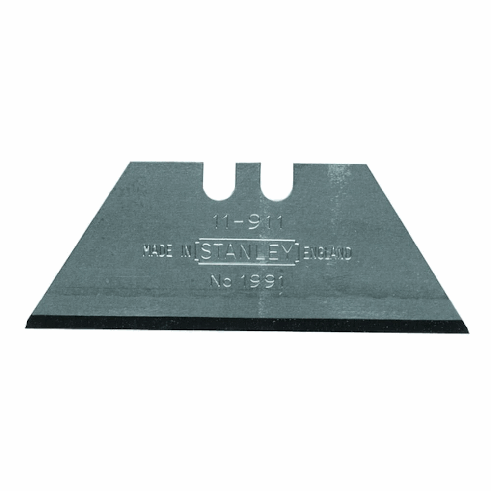 Blad for normal bruk til generelle formål, ideell for papir, kartong, lær og de fleste platematerialer. Bladet passer til alle standard Stanley-kniver (unntatt 99E-kniven). Lite 2-punkts vendbart trapesformet blad Trapesformet blad med avrundede ender for å begrense risikoen for skade. Passer til Stanley kniv type: Titan FB, 199E, Ultility Knife, 99 E Retractable Blad Knife, Quick Change Knife, Titan RB, Springback knife og Quickslide Pocket Knife.